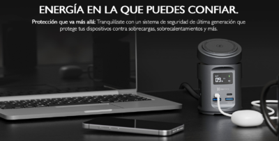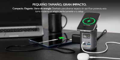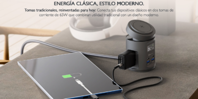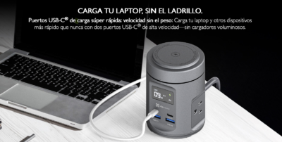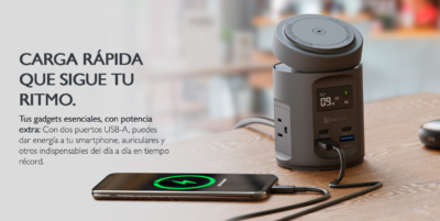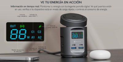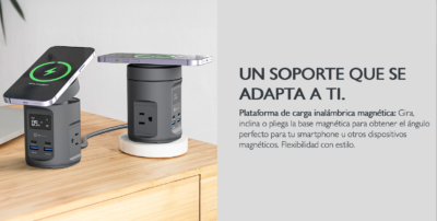 Su diseño compacto y moderno se adapta fácilmente a espacios como oficinas, mesas de noche o escritorios de trabajo. Además, incorpora indicadores LED y sistemas de protección contra sobrecarga, sobrecalentamiento y cortocircuitos, garantizando una carga segura.