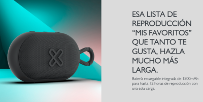 La música no tiene por qué detenerse. Con una potente batería recargable de 1500 mAh, el Klip Xtreme GrooveSplash ofrece hasta 12 horas de reproducción continua con una sola carga (al 50% de volumen), y se recarga completamente en solo 3 horas. Esto te permite disfrutar de largas sesiones musicales sin preocuparte por encontrar un enchufe. Además, integra un micrófono manos libres que te permite contestar llamadas directamente desde el parlante, manteniendo tus manos libres y tu comunicación clara. Su diseño compacto y ligero lo convierte en un parlante inalámbrico versátil y fácil de transportar, ideal para cualquier ocasión.